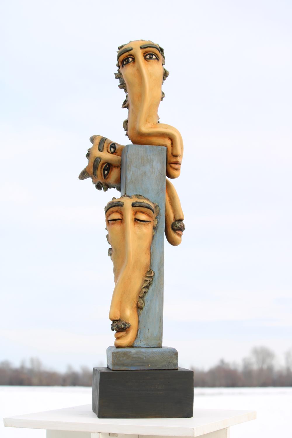 “Le travail de la sculpture est, pour moi, l'incarnation de la condition humaine et l'expression de "l'éternité", contrairement au "temps" accéléré, décalé et éphémère. La sculpture révèle les effets et les résultats de ce changement temporel en termes de contradictions et conflits qu'une personne vit au cours son existence : en raison de son appartenance à la patrie, au sol, à l'histoire, à ses racines, d'une part, et à son amour, ses rêves de liberté, d'émancipation et de transcendance dans le ciel jusqu'à Dieu et l'éternité, d'autre part.”
